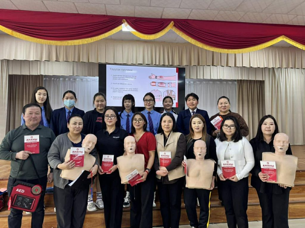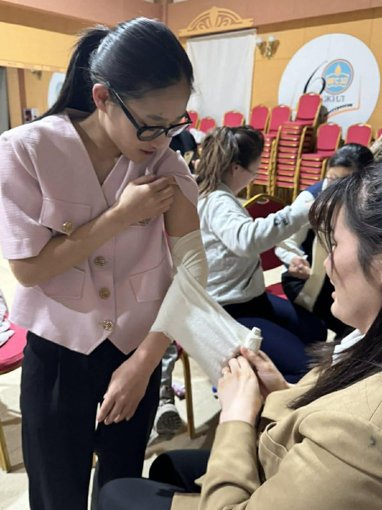 🩺 Энэхүү сургалтаар анхны тусламжийн гинжин хэлхээ, зүрх, уушигны сэхээн амьдруулалт (CPR), хахалт, таталт, ухаан алдалт, түлэгдэлт, цахилгааны осол, цус алдалт, ясны хугарал, нүдний гэмтэл, зүрхний шигдээс, тархины харвалтын үеийн тусламжийн талаар мэдлэг олгов. Оролцогчид менекен, AED болон анхны тусламжийн хэрэгслүүд дээр дадлага хийж, чадвараа бэхжүүлсэн юм.