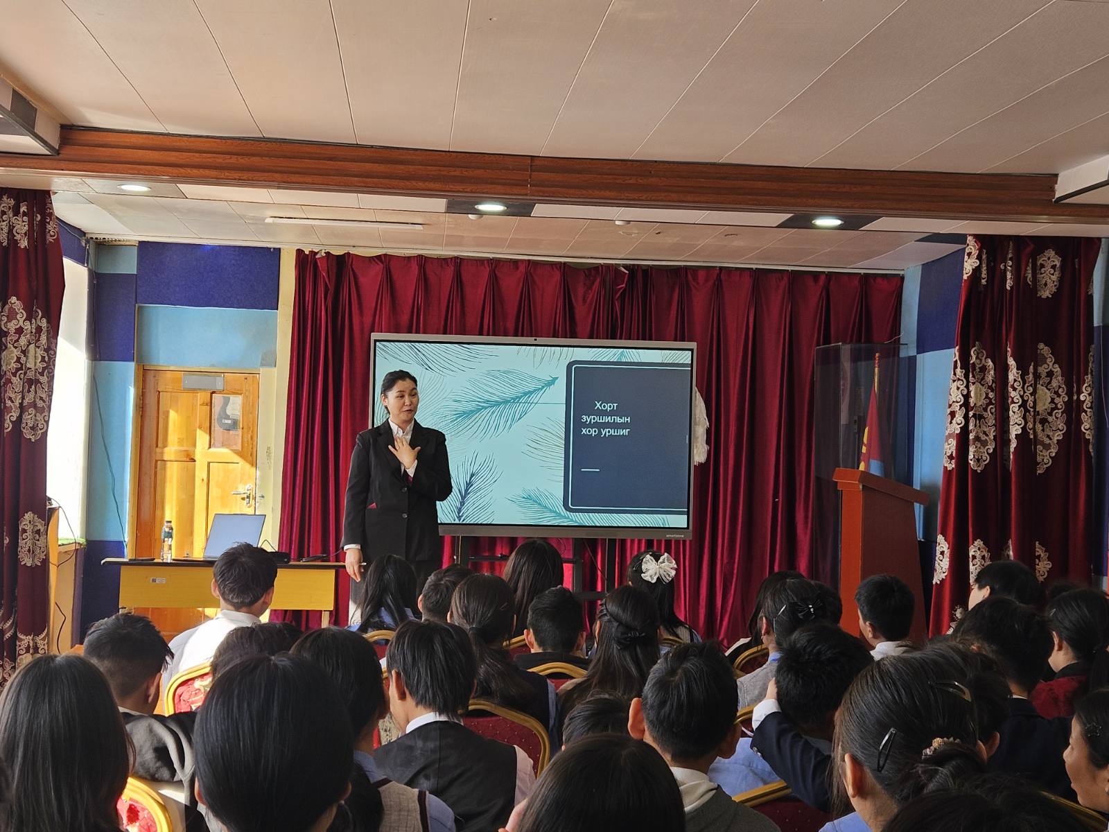 ЕБ-ЫН СУРГУУЛИЙН СУРАГЧДАД ЭРХ ЗҮЙН МЭДЛЭГ ОЛГОХ, ХОРТ ЗУРШЛААС УРЬДЧИЛАН СЭРГИЙЛЭХ ЧИГЛЭЛЭЭР СУРГАЛТ ЗОХИОН БАЙГУУЛЛАА
