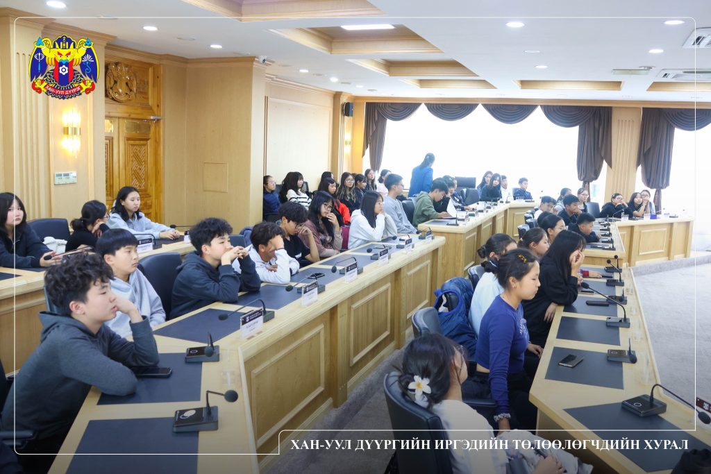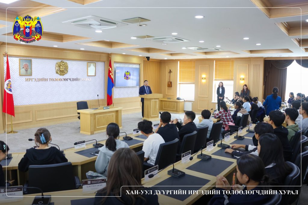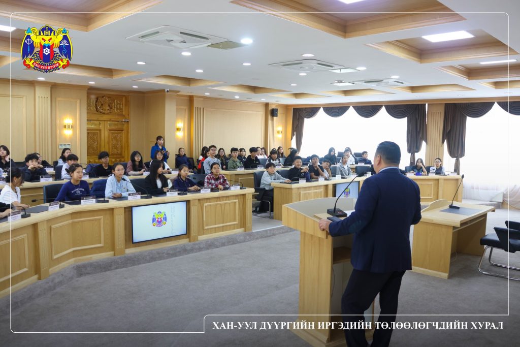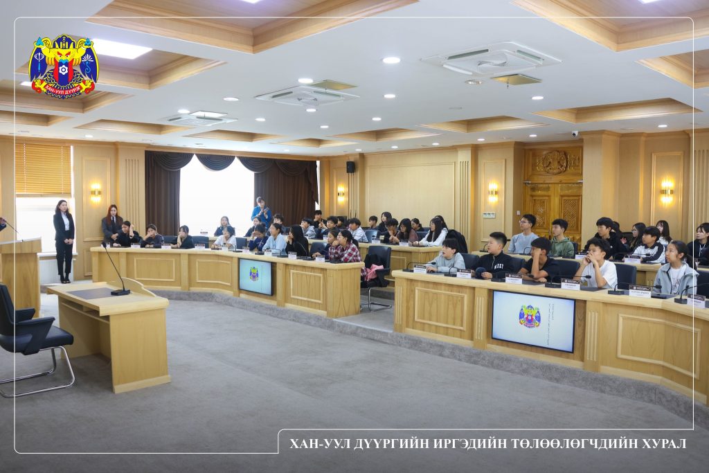 Ерөнхий боловсролын Орхон ХаСү сургуулийн 8 дугаар ангийн сурагчид Нийгэм судлалын хичээлийнхээ “Орон нутгийн удирдлага” сэдвийн хүрээнд Хан-Уул дүүргийн иргэдийн Төлөөлөгчдийн Хурал болон Засаг даргын Тамгын газрын үйл ажиллагаатай танилцлаа.
