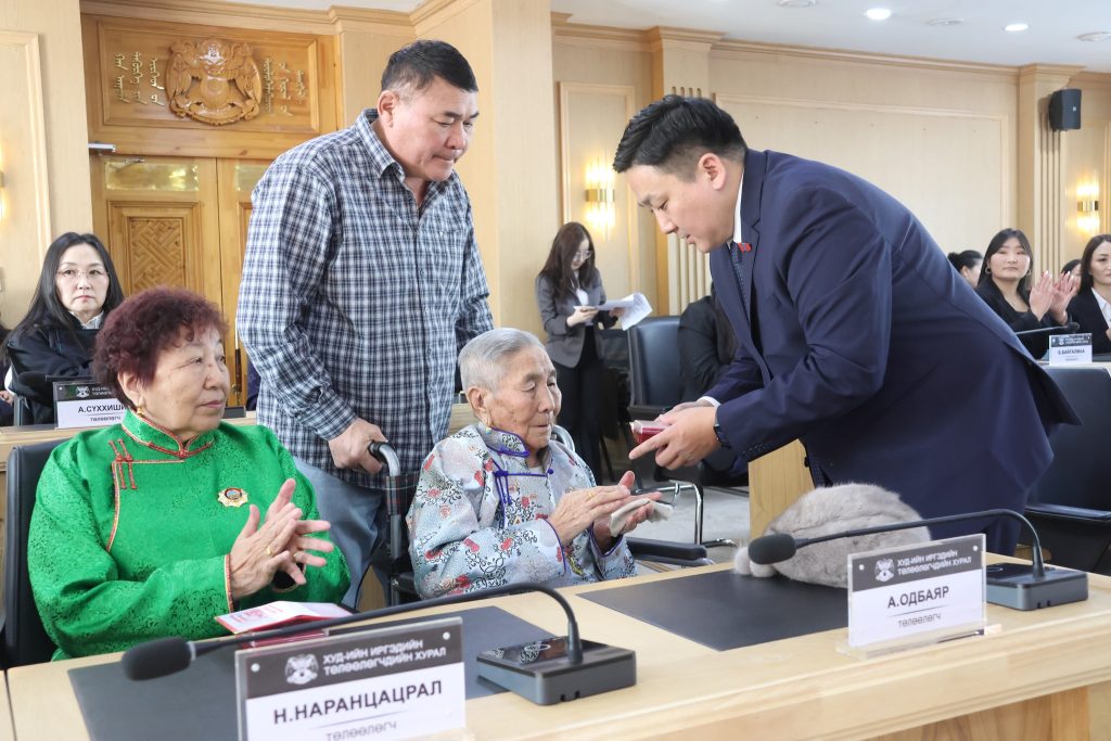 Хөдөлмөрийн гавьяаны улаан тугийн одонгоор : Хан-Уул дүүргийн 17 дугаар хорооны ахмад настан Х.Очирбат, Хан-Уул дүүргийн 25 дугаар хорооны ахмад настан Р.Цэрэндэжид