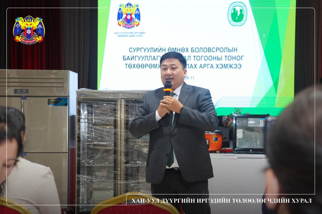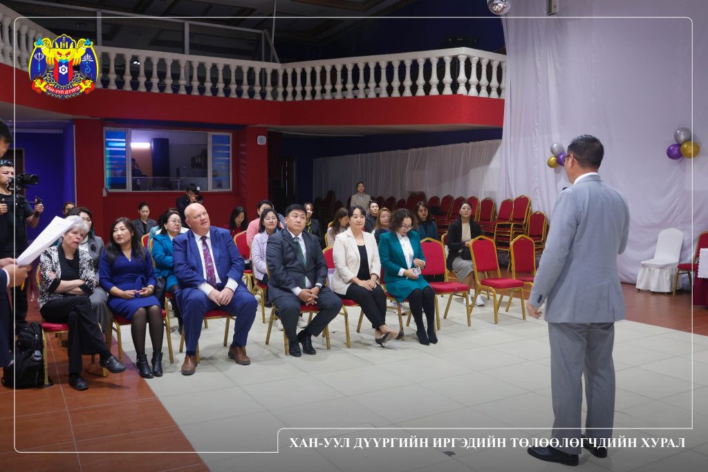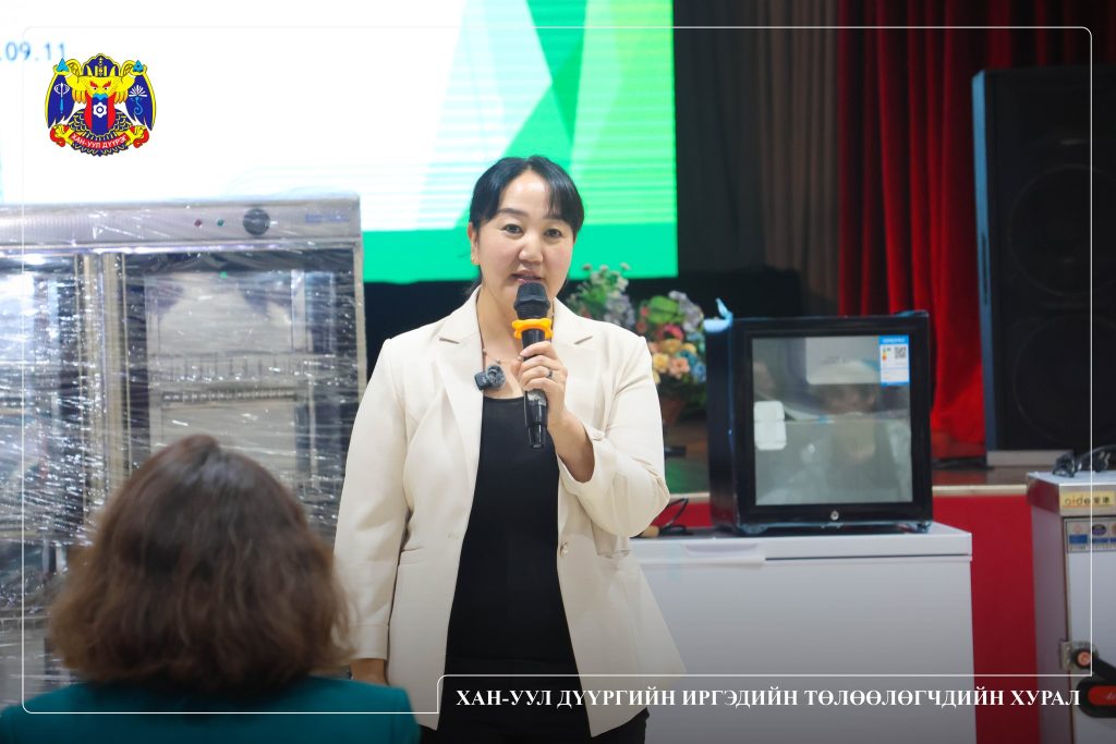 ХАН-УУЛ ДҮҮРГИЙН ИРГЭДИЙН ТӨЛӨӨЛӨГЧДИЙН ХУРЛЫН ДАРГА Ч.БАТ-ОРГИЛ “ДЭЗЭРЭТ” ОЛОН УЛСЫН ЭНЭРЛИЙН БАЙГУУЛЛАГАТАЙ ХАМТРАН ДҮҮРГИЙН 27, 41, 49, 67, 71, 134, 308, 324, 325, 336, 349, 354 ДҮГЭЭР ЦЭЦЭРЛЭГИЙН ЭРХЛЭГЧ НАРТ ХООЛ ҮЙЛДВЭРЛЭЛИЙН НЭН ШААРДЛАГАТАЙ ТОНОГ ТӨХӨӨРӨМЖИЙГ ХҮЛЭЭЛГЭН ӨГЛӨӨ.