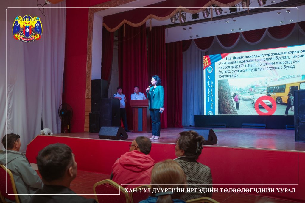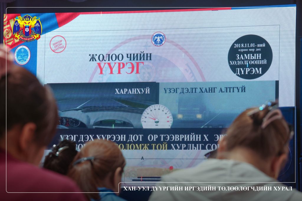 ХАН-УУЛ ДҮҮРГИЙН ИРГЭДИЙН ТӨЛӨӨЛӨГЧДИЙН ХУРЛААС ХИЧЭЭЛИЙН ШИНЭ ЖИЛ ЭХЭЛЖ БУЙТАЙ ХОЛБОГДУУЛАН “ЗАМ ТЭЭВРИЙН ОСЛООС УРЬДЧИЛАН СЭРГИЙЛЭХ, ЗАМЫН ХӨДӨЛГӨӨНИЙ АЮУЛГҮЙ БАЙДЛЫГ ХАНГАХ АЯН”-ЫГ ЭХЭЛЛЭЭ