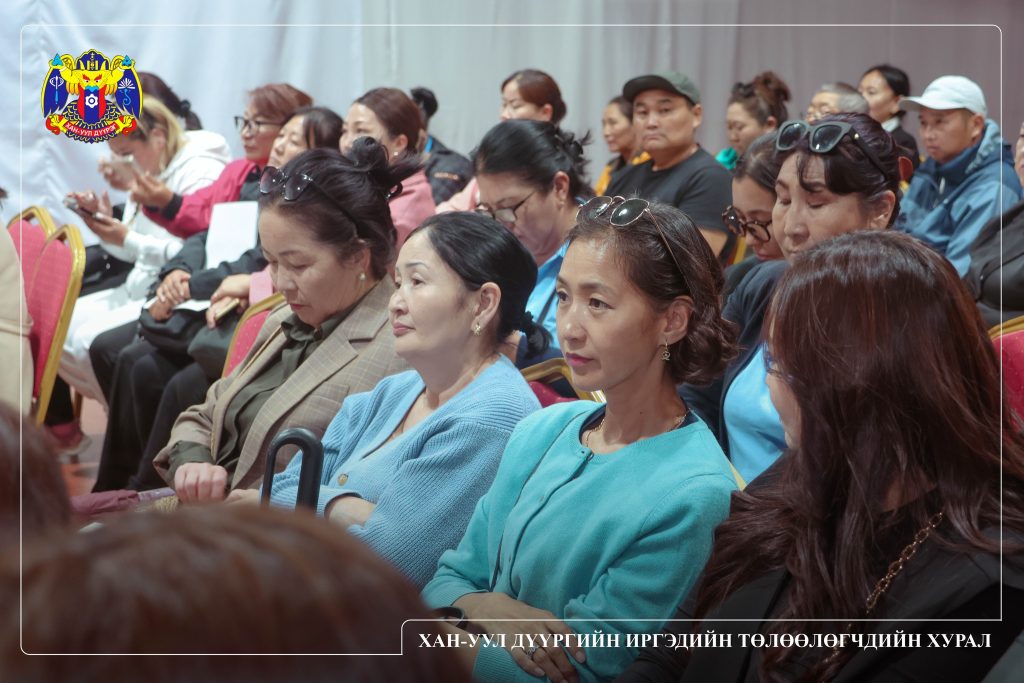 Аяны хүрээнд дүүргийн 25 хорооны Засаг дарга, зохион байгуулагч, нийгмийн ажилтан, хэсгийн ахлагч, иргэдэд Монгол Улсын Замын хөдөлгөөний аюулгүй байдлын тухай хууль, Зөрчлийн болон Эрүүгийн тухай хуулийн нэмэлт өөрчлөлт, Замын хөдөлгөөний дүрмийн талаарх сургалтыг дүүргийн Замын цагдаагийн хэлтэс, Соёлын ордон, Коуч лаб Монголиа сургалтын төвтэй хамтран 2025 оны 08 сарын 22-ны өдөр зохион байгуулж 224 иргэн хамрагдлаа.