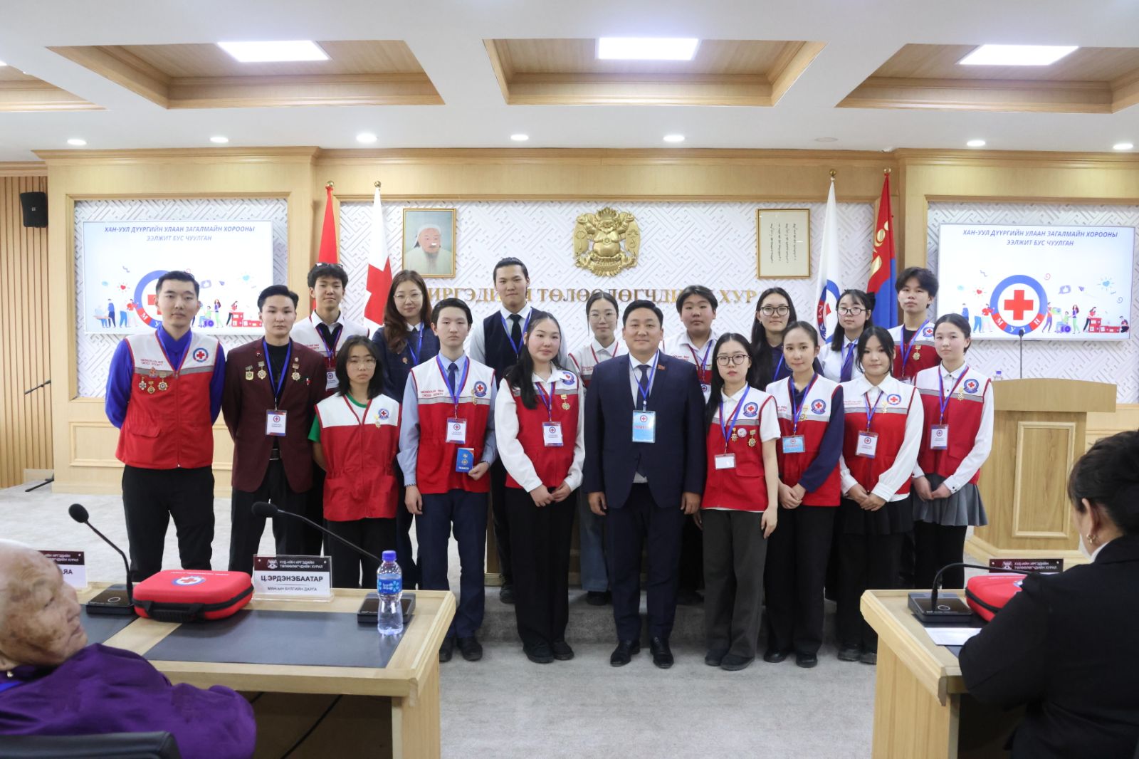 Мөн хүмүүнлэгийн үйлсийг манлайлагч нарыг Монголын Улаан загалмайн нийгэмлэгийн медалиар шагнаж, урамшуулсан юм.